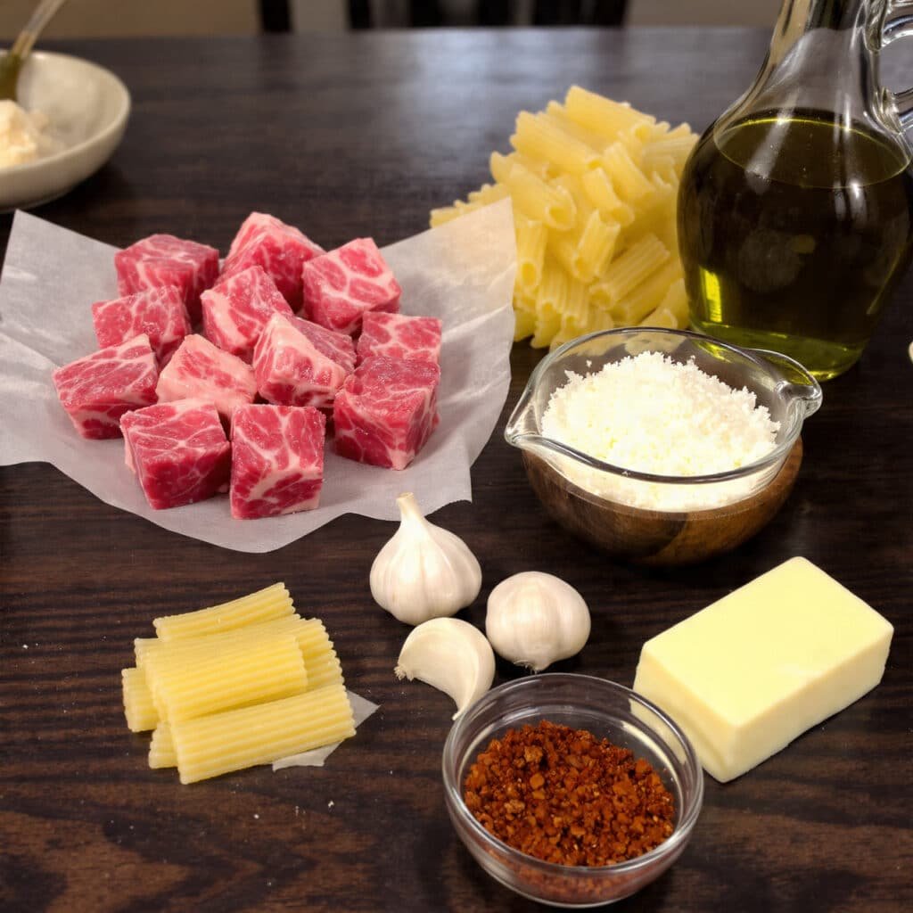- Sofia’s Answer: Rigatoni is king here, but Penne Rigate (the one with ridges) is a solid second choice. Avoid long noodles like Spaghetti, as they don’t hold the steak tips well.